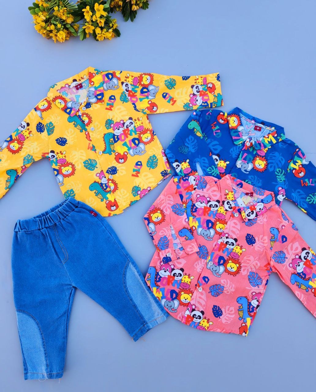 ست بلوز کتان نخ و شلوار جین وارداتی